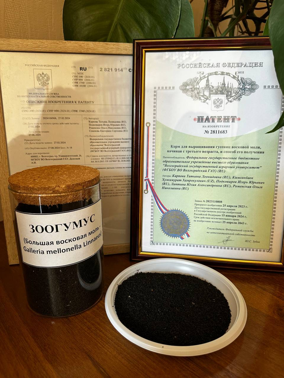 - оформлены права интеллектуальной собственности на способ получения зоогумуса, для грунта выращивания рассады хлопка на основе экскрементов личинок большой восковой моли.