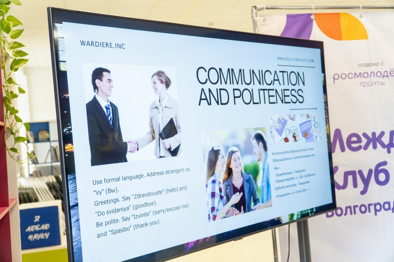 В Центре поддержки молодежных инициатив и детско-юношеского туризма в рамках адаптационного курса в Волгограде состоялась вторая лекция «Основы неформального поведения в России». В мероприятии приняли участие иностранные обучающие Волгоградского ГАУ из Того, Ирака, Бенина, Мавритании, Камерун, Ганы, Анголы в сопровождении специалиста отдела международного сотрудничества Елены Быстровой.
